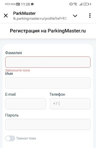 Нажмите на полученную ссылку со своего смартфона или скопируйте для открытия в браузере (вставьте скопированную ссылку в браузер). Ссылка откроет страницу регистрации.