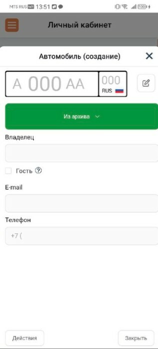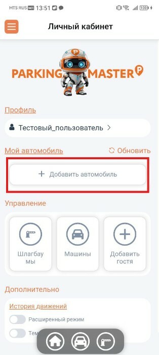 После регистрации вы можете самостоятельно добавить в приложение свой автомобиль и ещё до 2 автомобилей (постоянных) (общий лимит — 3 авто на один участок).