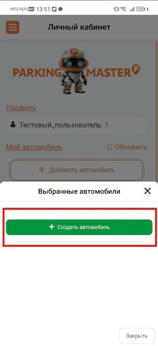 2. Нажмите на кнопку "➕ Добавить автомобиль" далее "➕ Создать автомобиль";