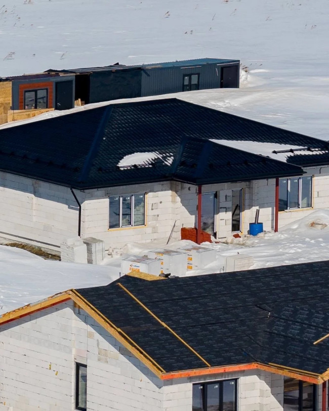 - Вилла Маркет. На участках №34 и №74 завершили монтаж теплого контура (стены, кровля, окна).